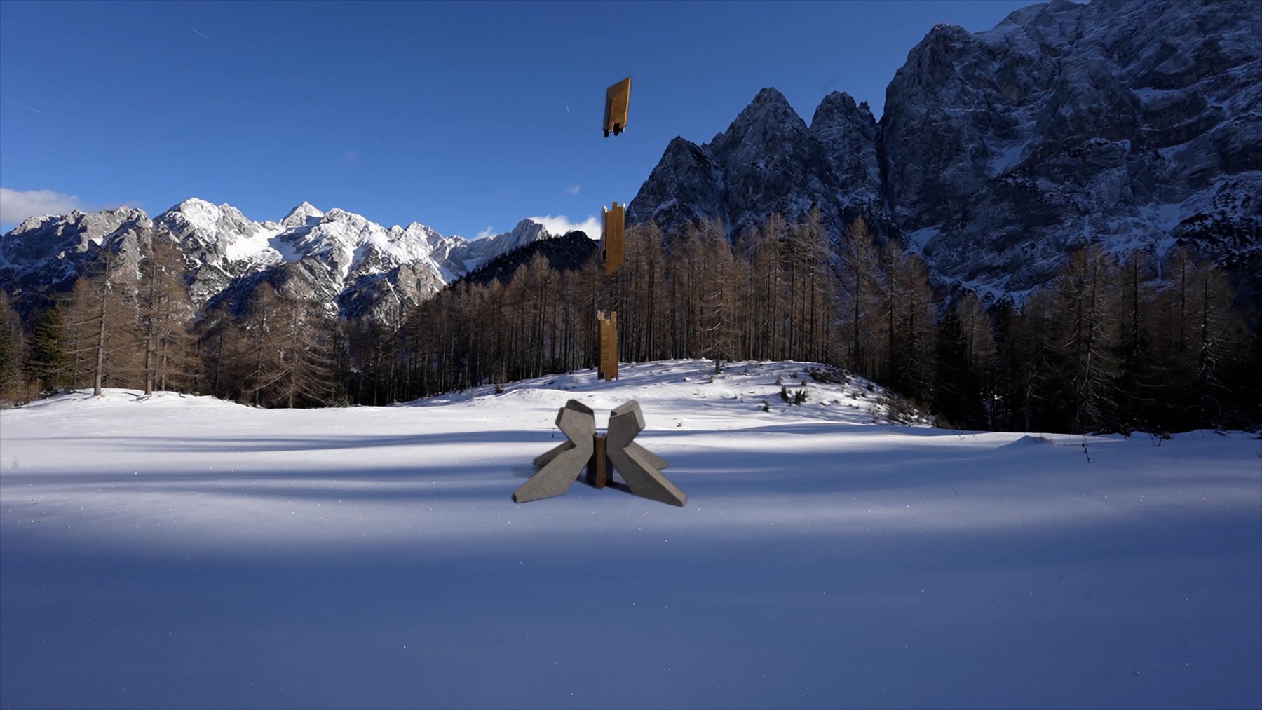 Glory Days could be seen as an ironic monument—a memorial outside of time that questions which narrative to believe. In the video work, the monolith transforms into a sci-fi looking body, ironically transcending even the scale of post-war socialist monuments. The influence of (questionable) belief systems and their long-lasting impact on collective identity lie in the core of Glory Days.